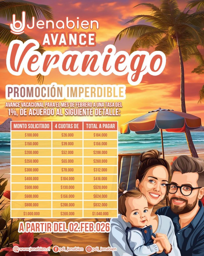 Durante el mes de febrero, Jenabien pone a disposición de sus socios y socias el Nuevo Avance Veraniego 2026, un beneficio especialmente diseñado para apoyar los gastos propios de la temporada estival.
