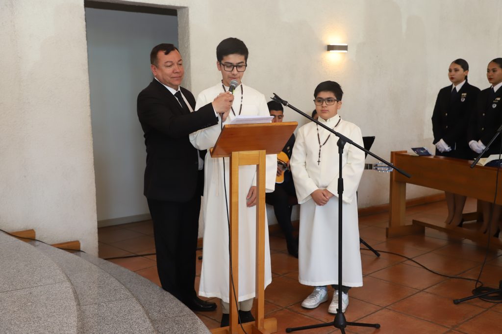 La ceremonia fue presidida por el Capellán Institucional Católico, Manuel Lizana, y contó con la presencia de autoridades institucionales, entre ellas el Jefe Nacional de Bienestar y Calidad de Vida, Prefecto Christian Serón; el Prefecto Inspector y Jefe Nacional de Educación, Héctor Cornejo; la Presidenta de la Corafam, Leila Caldera; La Directora de Escuela; Prefecta Maricel Torres y el Director del Centro de Capacitación Profesional, Subprefecto Rodrigo Zamora, quienes compartieron con las familias en este significativo momento.