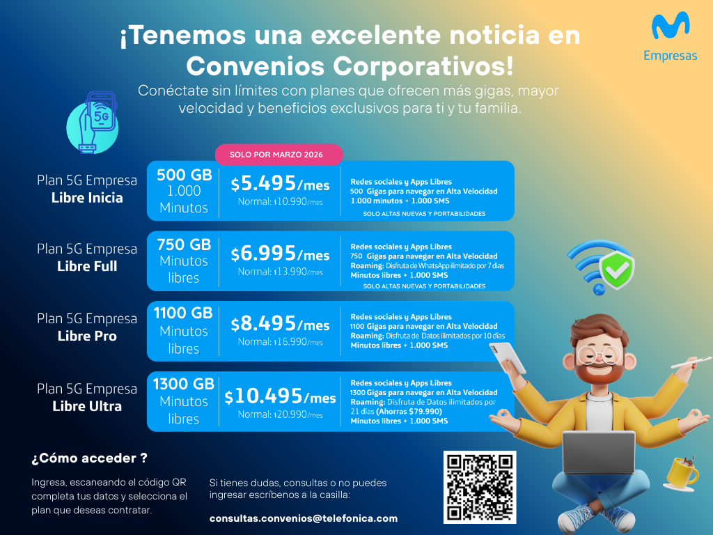 Acceder es muy sencillo: basta con escanear el código QR del convenio, completar tus datos y seleccionar el plan que mejor se ajuste a tus necesidades. Si tienes dudas o dificultades para ingresar, puedes escribir directamente a la casilla de consultas de Telefónica.