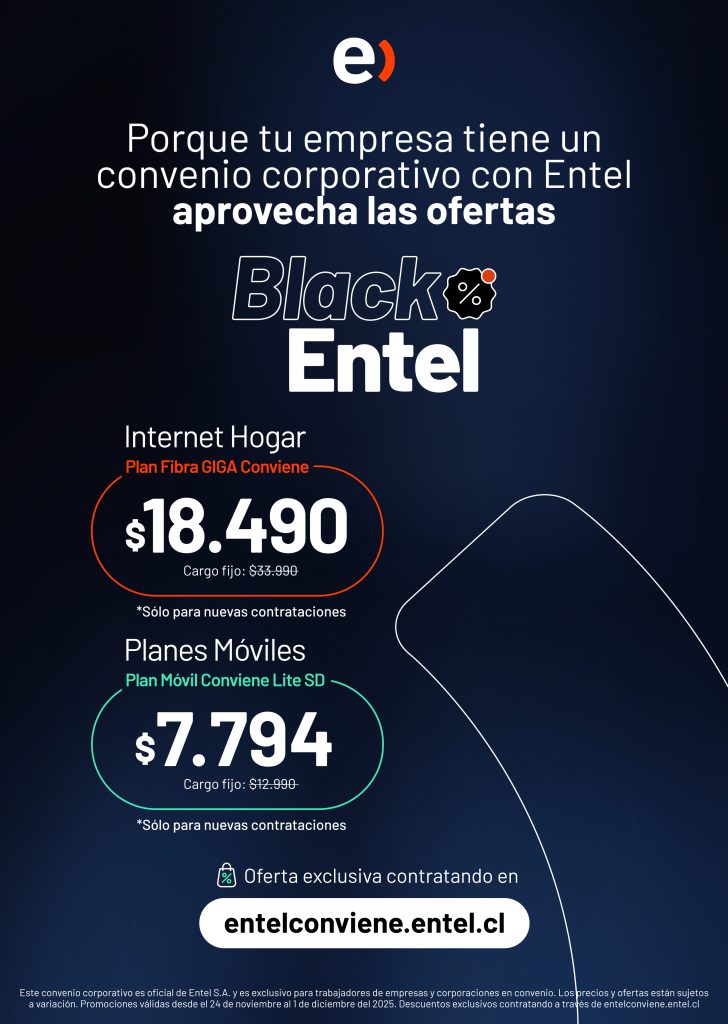 Esta promoción forma parte del Black Entel y estará disponible únicamente por pocos días, desde el 24 de noviembre hasta el 1 de diciembre. Es una oferta exclusiva para quienes contraten a través del sitio oficial: www.entelconviene.entel.cl