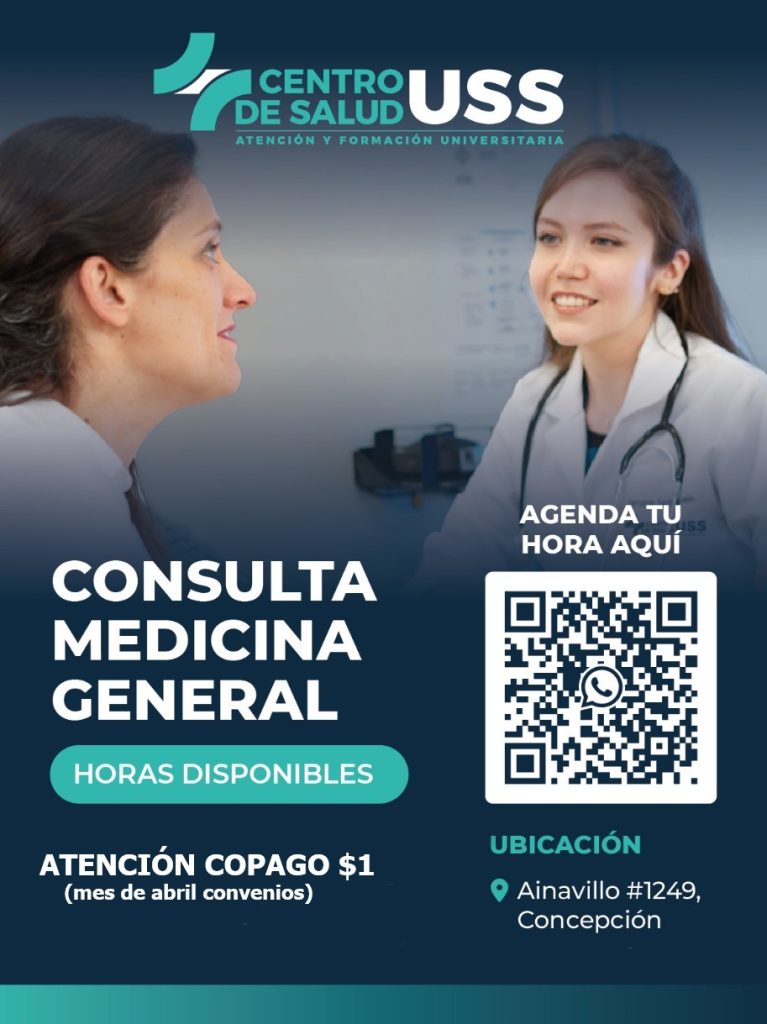 El Centro de Salud USS, ubicado en Ainavillo #1249, Concepción, combina atención clínica con formación universitaria, garantizando un servicio de calidad respaldado por profesionales y estudiantes en práctica supervisada. Esta alianza permite que los colaboradores y sus familias cuenten con un espacio confiable para resolver necesidades médicas básicas, con horarios disponibles y acceso rápido a la atención.