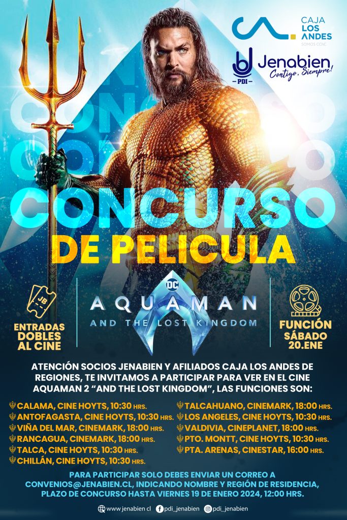 ¿No tienes planes para este sábado 20 de enero?, nos busques más porque Jenabien tiene la solución. Participa por entradas dobles para la película de “Aquaman y El Reino Perdido”.