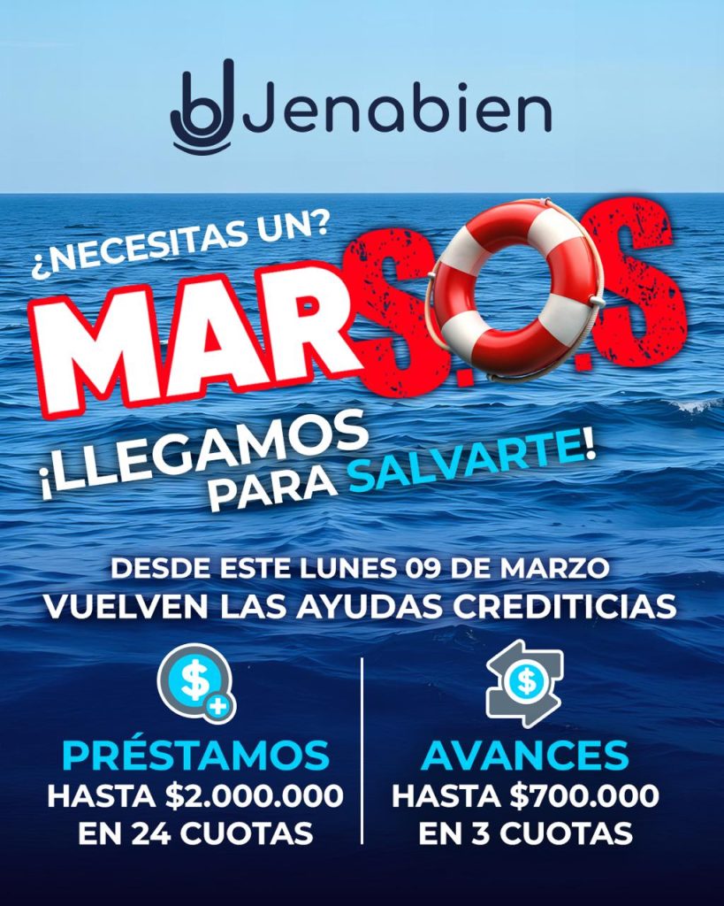 ¿Necesitas un MarSOS? En Jenabien seguimos tendiendo la mano con un salvavidas financiero, porque desde este 9 de marzo regresan las ayudas crediticias que tanto valoran nuestros socios y socias. El Préstamo Único vuelve con montos de hasta 2 millones de pesos, pagaderos en un máximo de 24 cuotas, mientras que el Avance Jenabien ofrece 700 mil pesos a devolver en 3 cuotas.