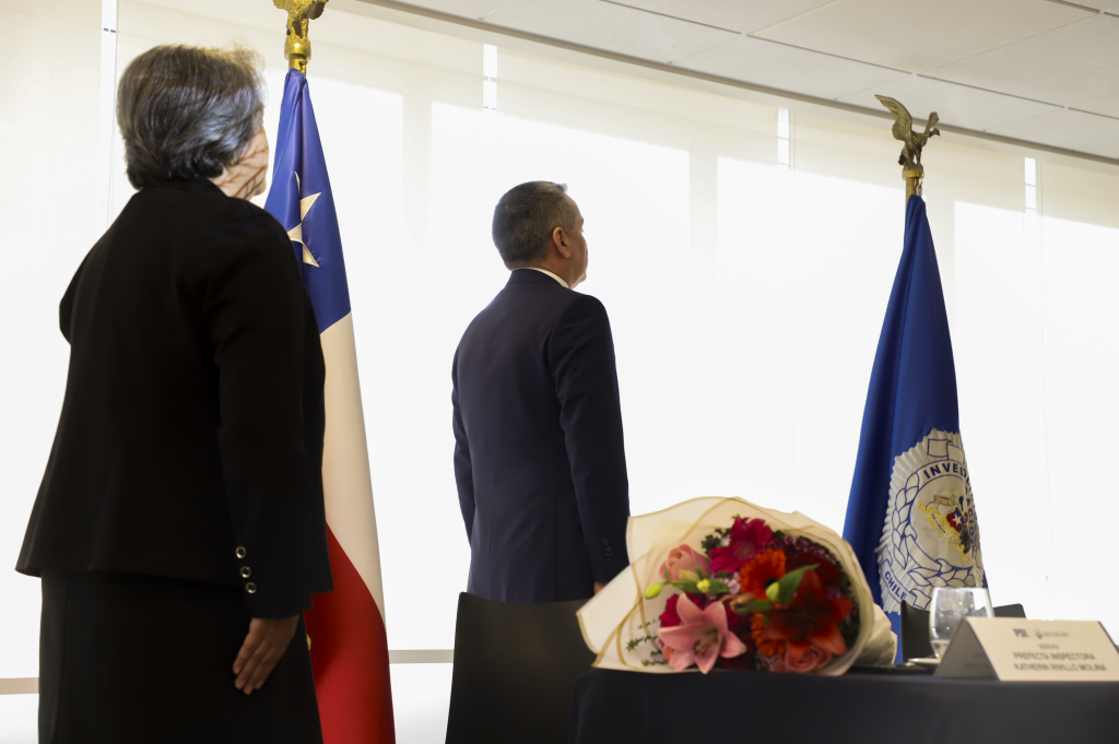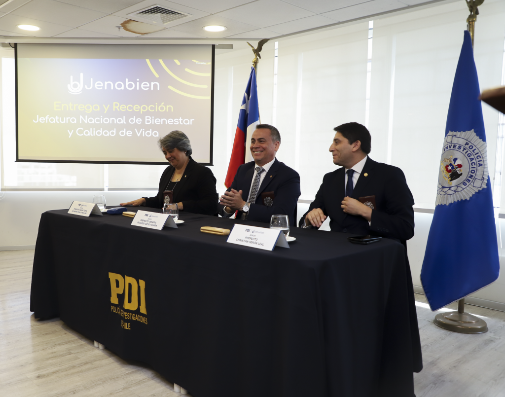 el pasado viernes 03 de octubre, en las dependencias de la Jefatura Nacional de Bienestar y Calidad de Vida (Jenabien), se realizó la ceremonia de Entrega y Recepción de la Jefatura Nacional, instancia en la que la Prefecta Inspectora Katherin Rivillo Molina hizo entrega del mando al Prefecto Christian Serón Leal. El acto fue presidido por el Subdirector del Personal y Soporte de las Operaciones, Prefecto General Ricardo Gatica Aliaga, quien ofició como interventor.