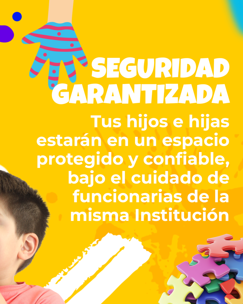 Tus hijos estarán en un espacio protegido y confiable, bajo el cuidado de funcionarias de la misma institución, lo que asegura un ambiente familiar y seguro.